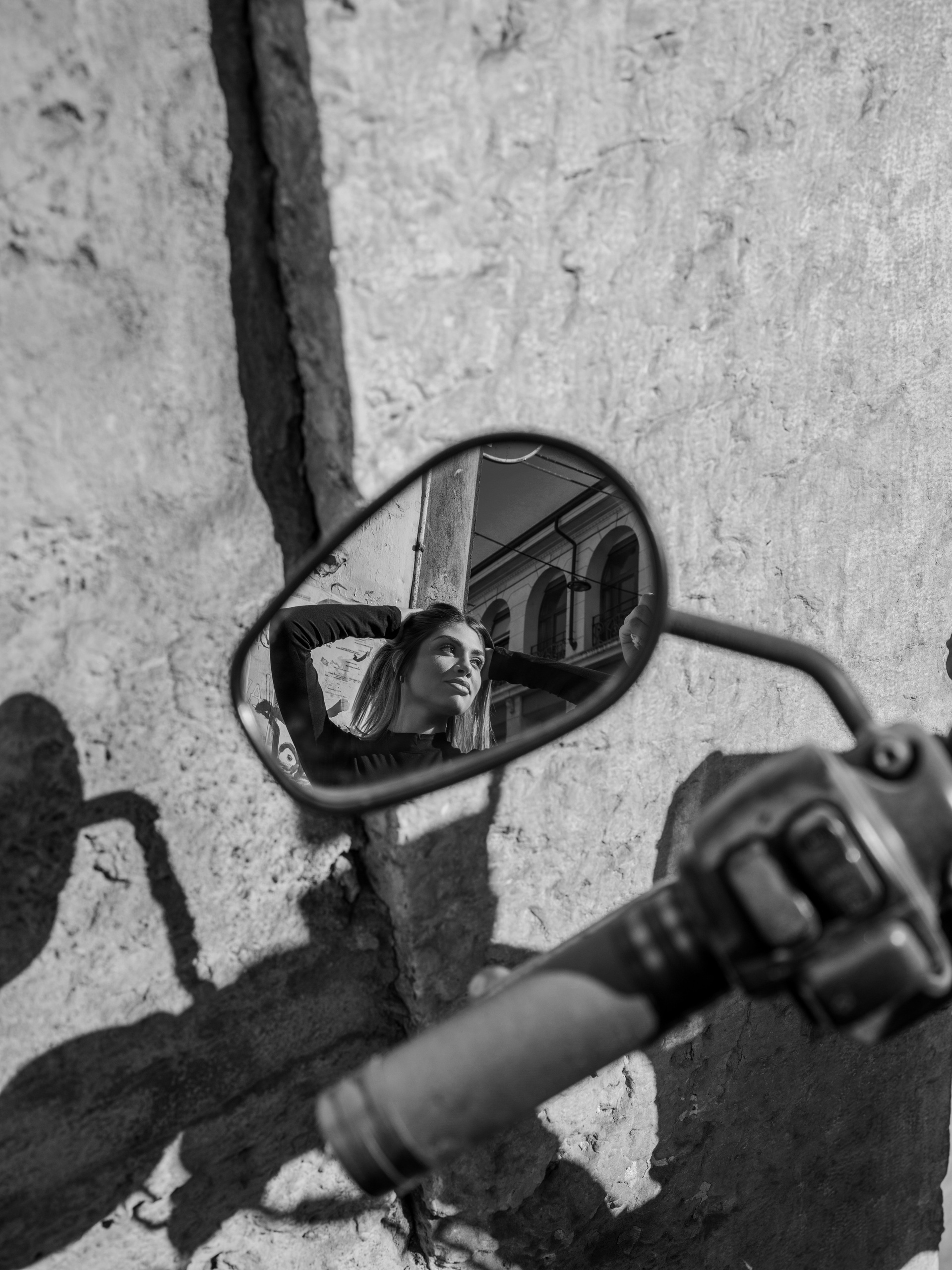 Model photoshoot in Italy using urban locations and natural atmosphere.
